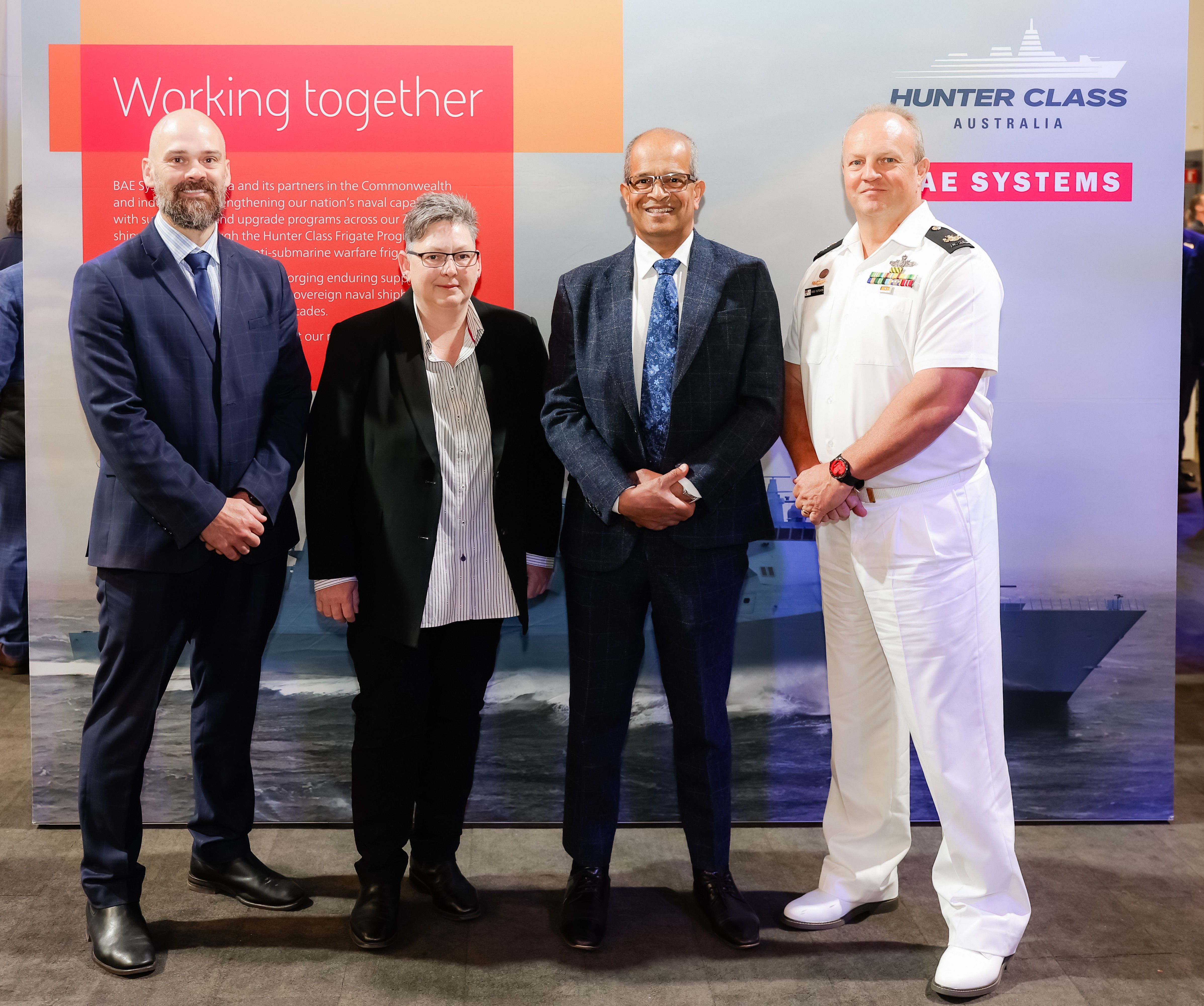 Pictured at #IndoPac2025 above from L - R: Brett Fenton, Chief of Staff, Hunter Class Frigate Branch; Tracey Clavell, Head of Supply Chain – Acquisition, BAE Systems Maritime Australia; Shankar Rasiah, Managing Director, AERIUS Marine Australia; and WO Gregory Fletcher, Royal Australian Navy.