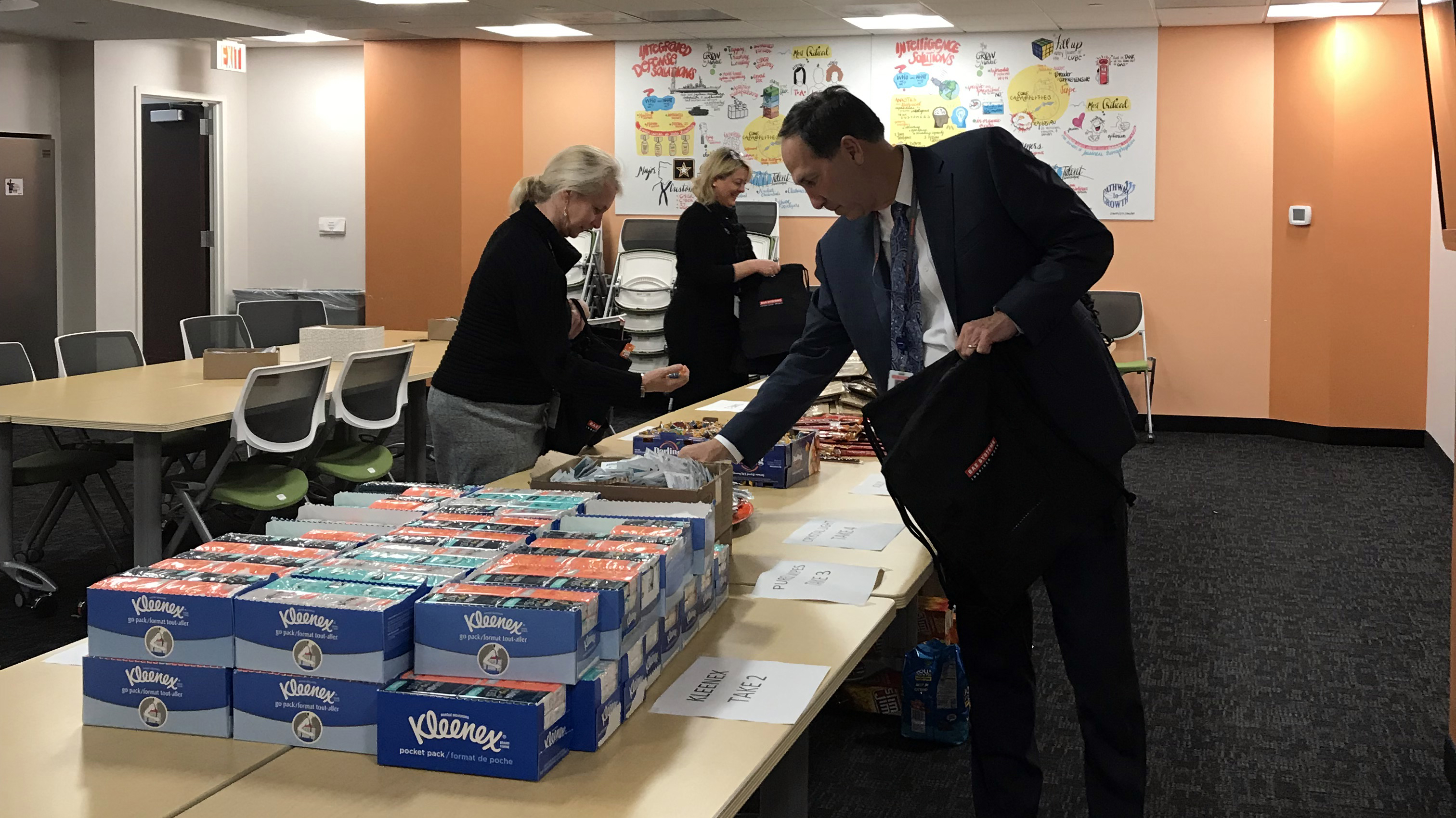 Employees in Phoenix, Ariz. hosted a holiday drive in partnership with the Sojourner Center, a local domestic violence shelter. During the holidays, Sojourner sets up a “boutique store” where parents can shop for their children and wrap gifts for them. Participating kids can earn holiday bucks by doing random acts of kindness and other things around the campus. Afterwards, they can use their bucks to shop for their parents in the store. Our employee contributions will all go into this store.