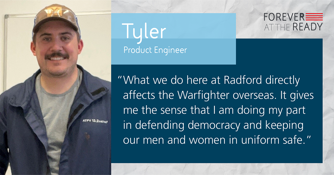 “What we do here at Radford directly affects the Warfighter overseas. It gives me the sense that I am doing my part in defending democracy and keeping our men and women in uniform safe.”