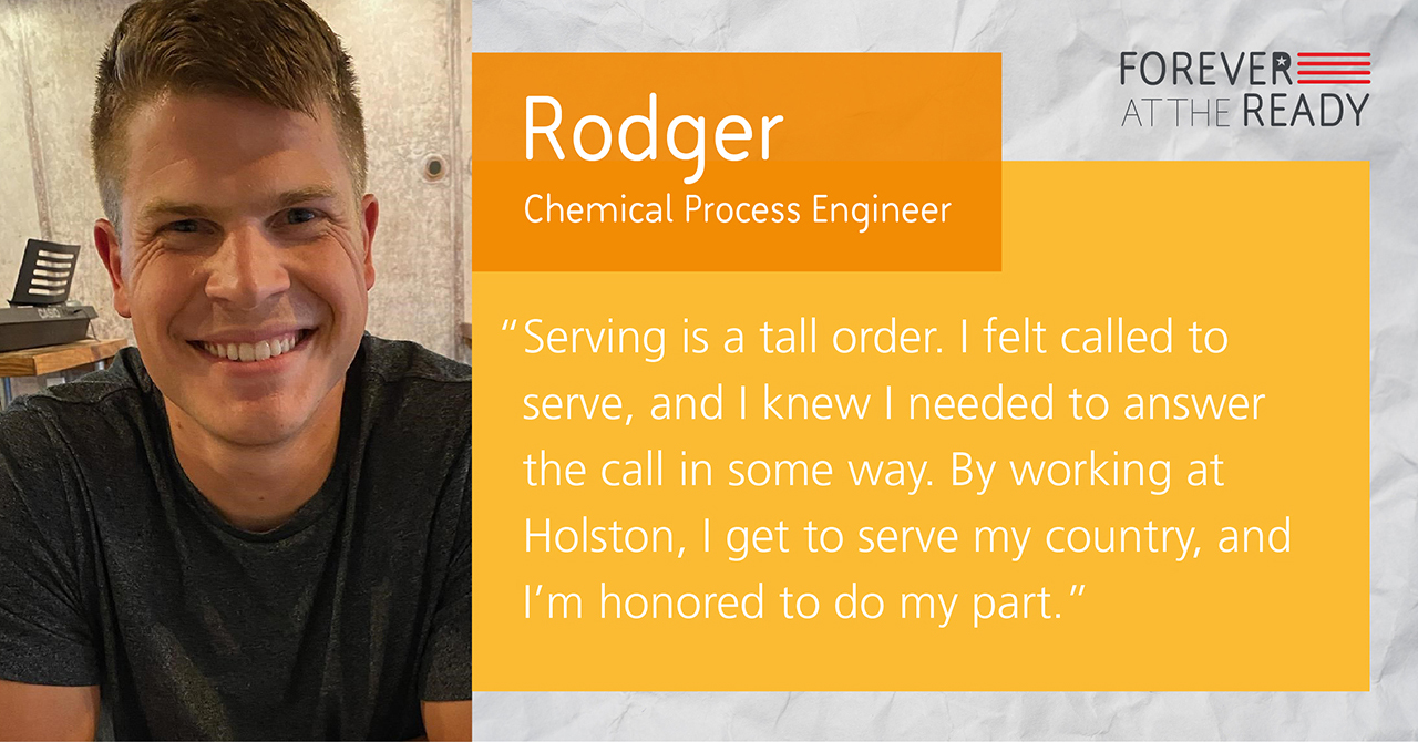 For Rodger, working at the Holston Army Ammunition Plant (HSAAP) is a way to serve his country and the Warfighter—and that includes someone very close to him: his brother, who serves in the U.S. Army. Helping to protect his brother is one of Rodger’s greatest motivators.